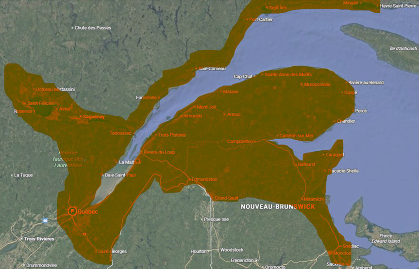 Notre territoire, c’est aussi notre force. Nous desservons un vaste secteur de l’Est du Québec et du nord du Nouveau Brunswick, avec des routes planifiées pour des livraisons régulières et ponctuelles.